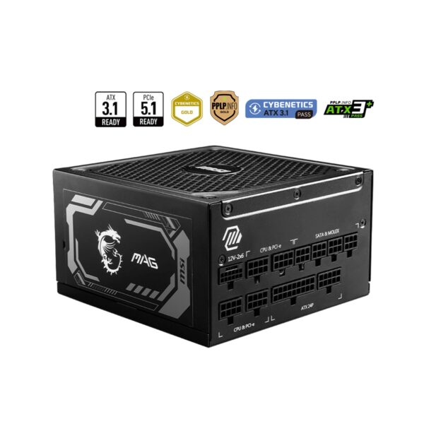 MSI 1250W Power Supply 80+Gold Fully Modular – Fluid Dynamic Bearing With PCle Gen 5.1 Ready (MAG A1250GL PCIE5)