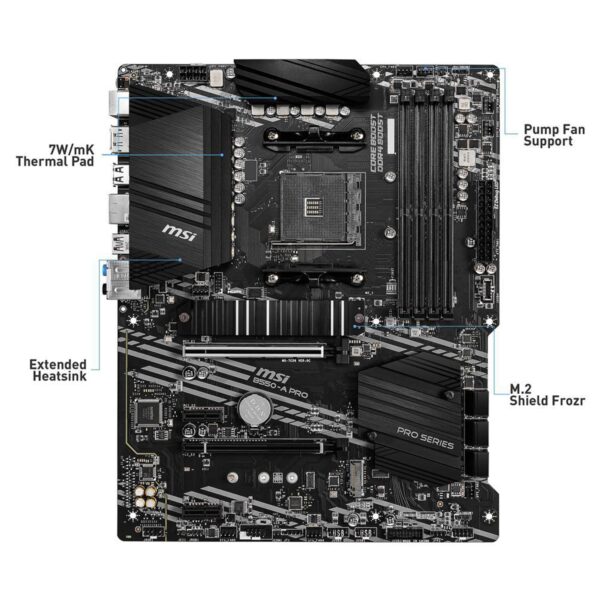 MSI B550-A PRO – AM4 Socket – AMD B550 Chipset – PCIe Gen4/Gen3 – M.2 Slots – DDR4 Memory – HDMI / Display port – ATX AMD Motherboard