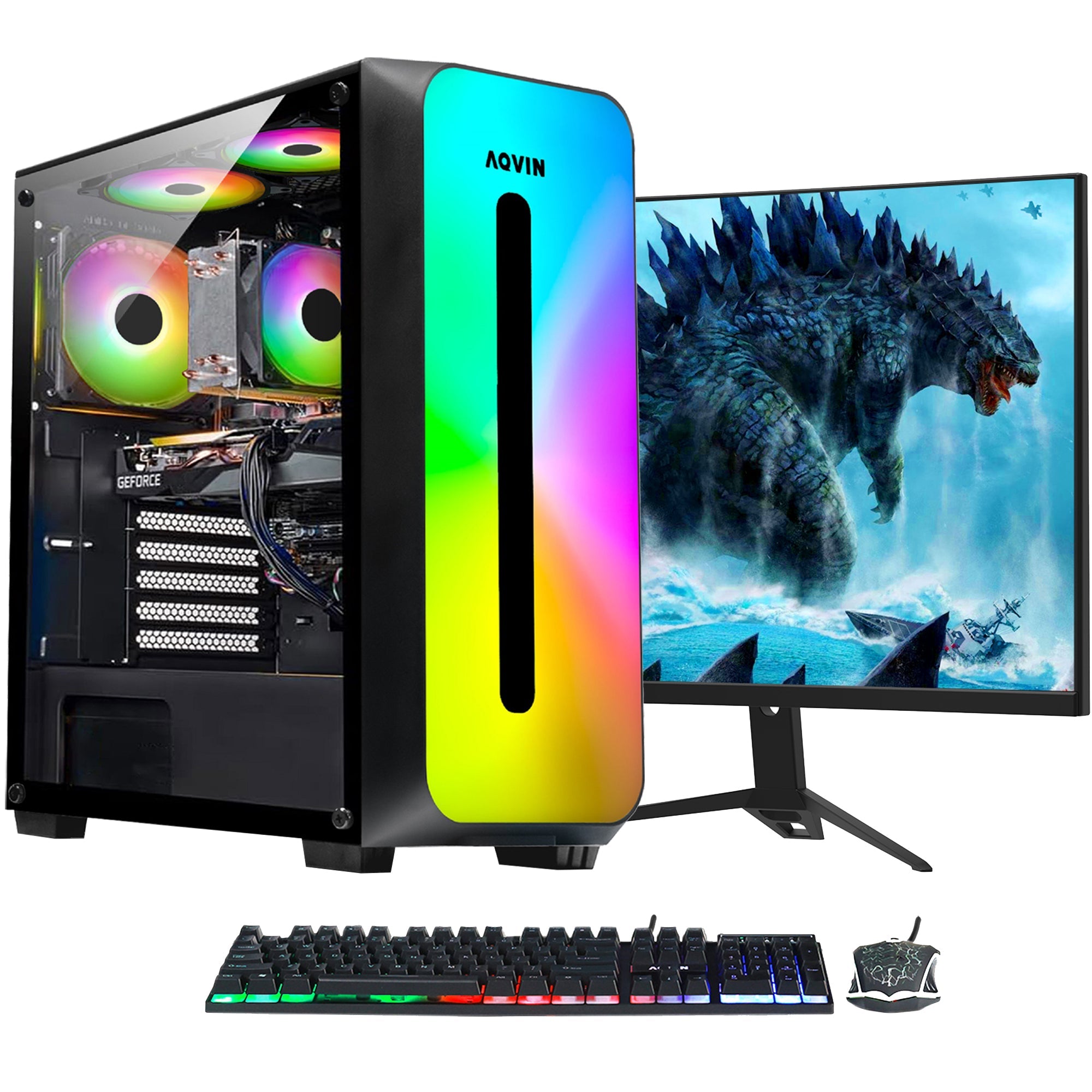 AQVIN Gaming PC Tower Desktop Computer Combo, Intel Core i7 up to 4.60 GHz, 32GB DDR4 RAM, 1TB – 2TB SSD, RX 580, GTX 1660s, RTX 3050, RTX 3060, Windows 11 Pro, WIFI – 27 inch Curved Gaming Monitor