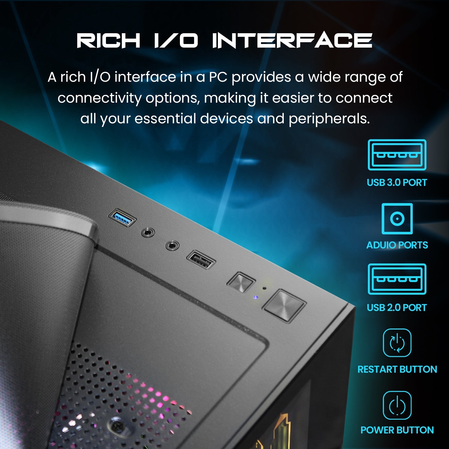 🌈 RGB Fan lighting with various color effects through tempered glass side panel offers an attractive, futuristic look to your gaming setup.