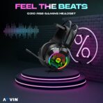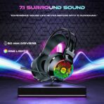 AQVIN Q310 RGB Wired Gaming Headset, RGB Backlight, 7.1 Stereo Surround Sound, 50MM Drivers, Adjustable Microphone, Over-Ear Headphones for PC, Laptop etc – Black