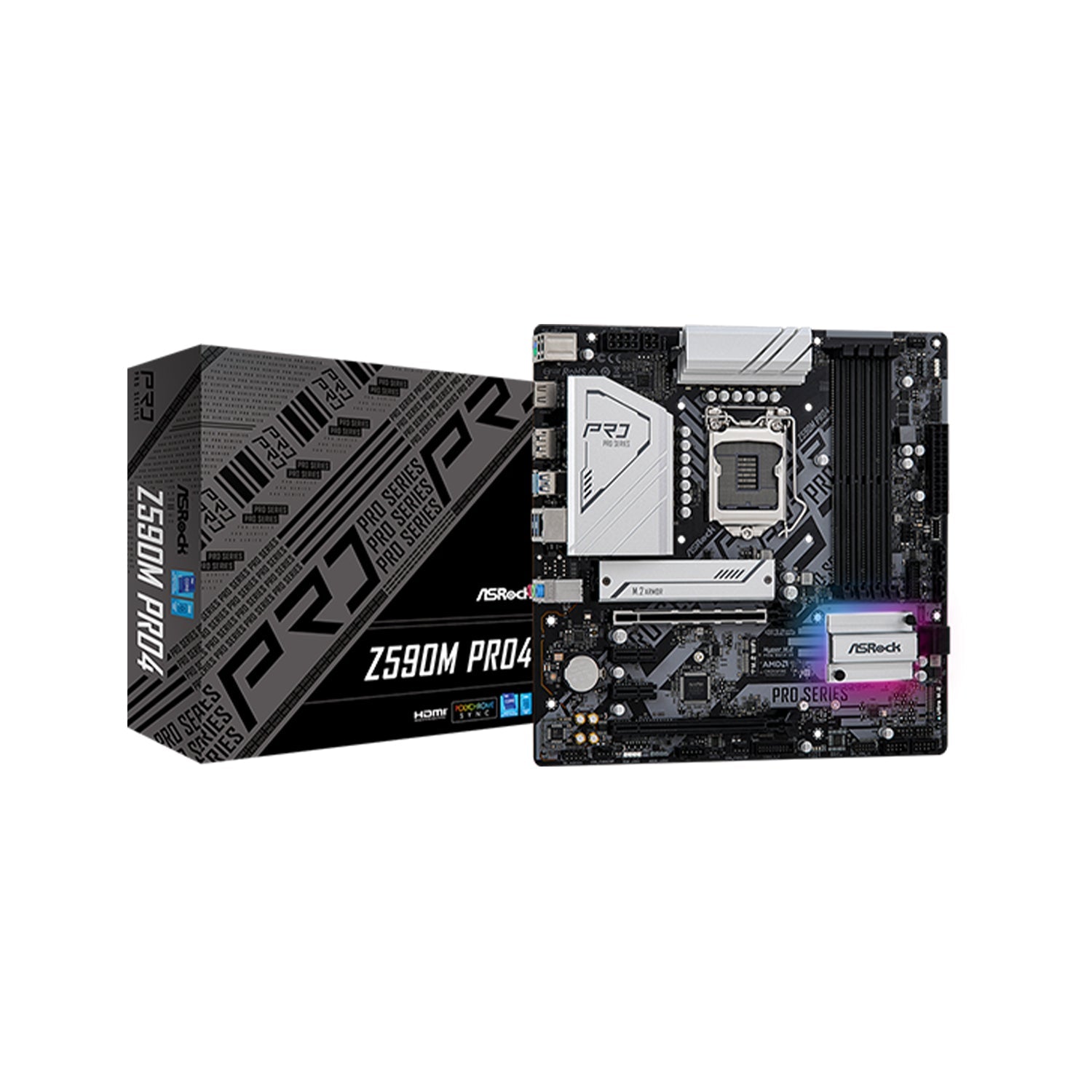 - ASRock Z590M PRO4: Is a compact motherboard offering solid performance with support for Intel processors, PCIe 4.0, and advanced connectivity options.
