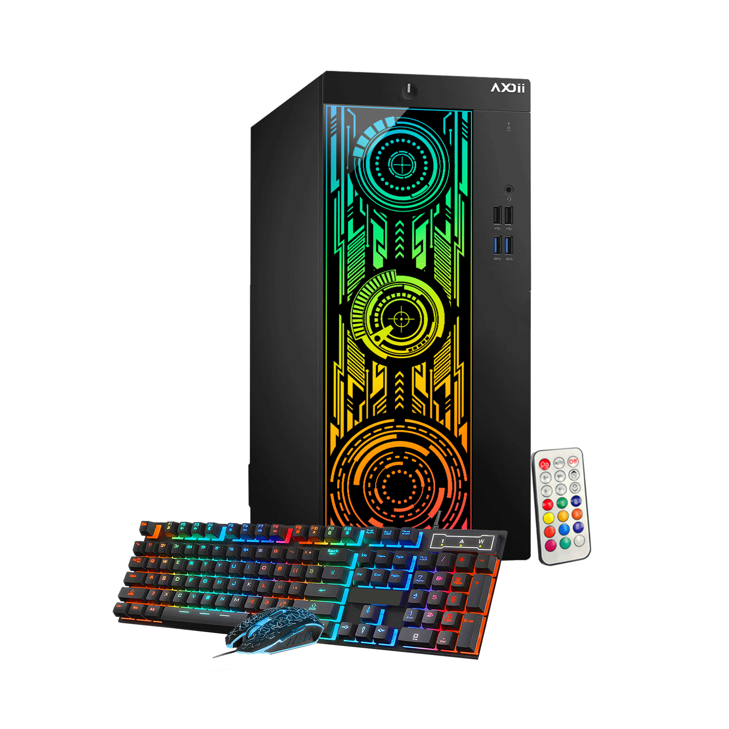 AXOII ELECTRA RGB Gaming Desktop Computer PC, Intel Core – I5/I7 Processor, Graphics Card – RX 550 / GTX 1050 / GTX 1650 / RTX 3050, 32GB DDR4 RAM, 1TB NVMe SSD, Wi-Fi, Bluetooth – Windows 11 Pro