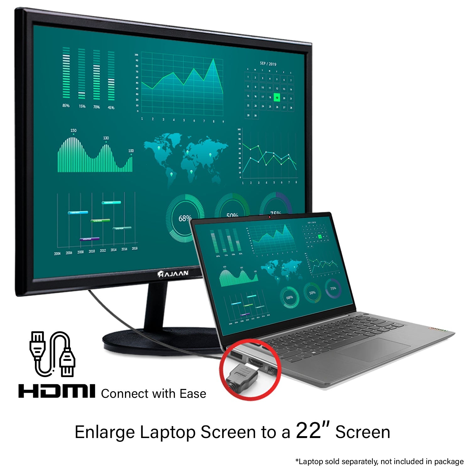 • HAJAAN HM220 22” Monitor features Full HD (1920×1080) resolution for unbelievable pixel-by-pixel image performance. You’ll experience the most amazing clarity and detail while working, gaming, or enjoying the latest in multimedia entertainment.