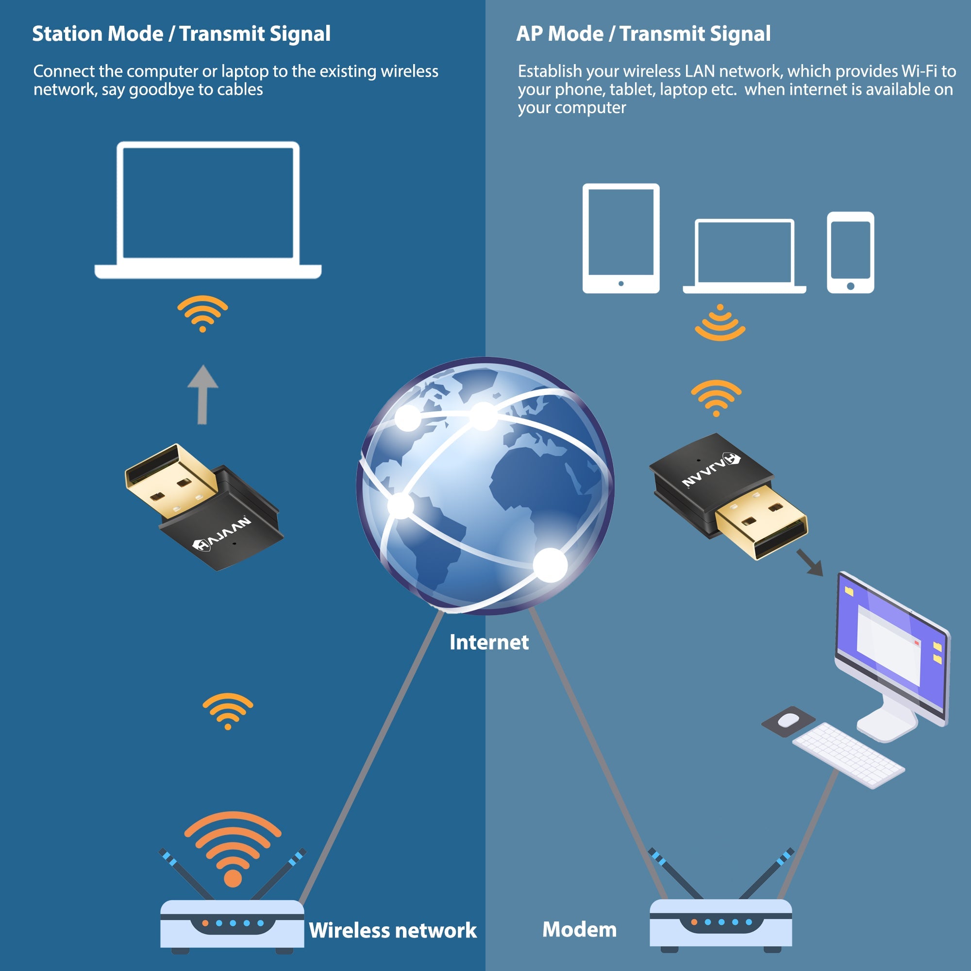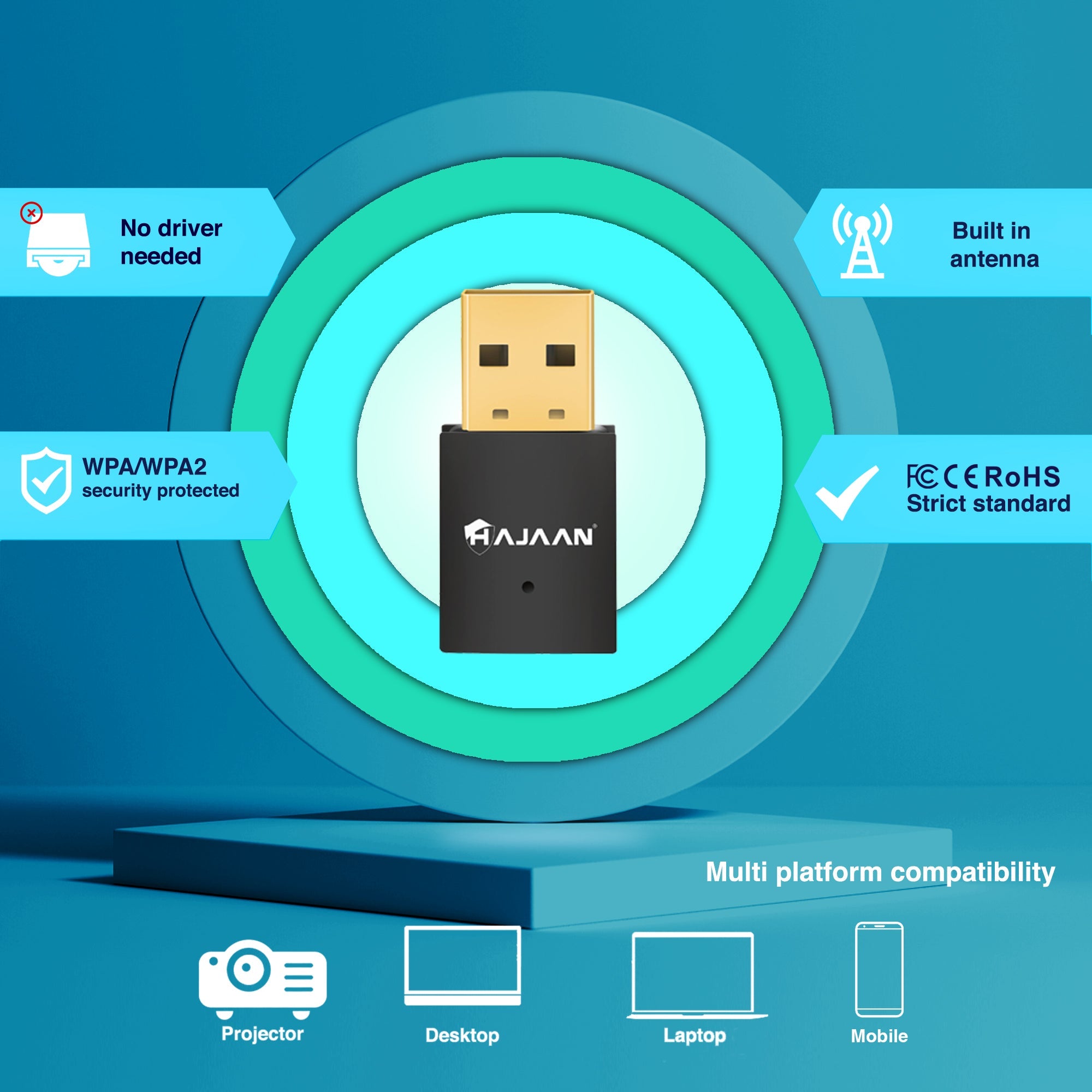 HAJAAN 300Mbps USB WiFi Adapter Plug and Play WiFi Dongle for PC Desktop, Laptop, Wireless Network Adapter Support Windows 10, 8, 7, Vista, XP, Mac OS