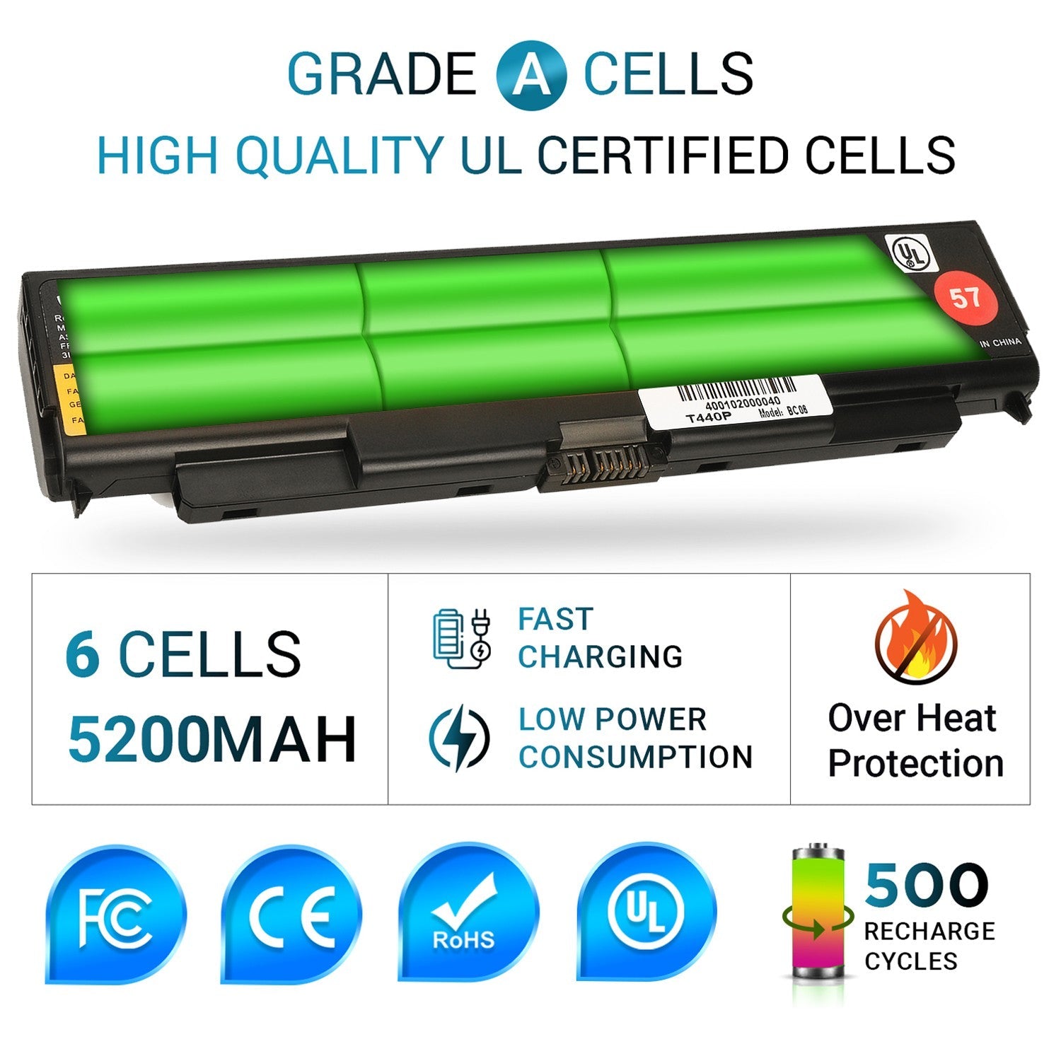 - All HAJAAN batteries are UL/CE-/FCC-/RoHS certified for safety and packed with a variety of safety features, including short circuit, overheat and overload protections. Grade A cells ensure fast charges and low power consumption. 100% New from Manufacturer. Up to 500 recharge cycles