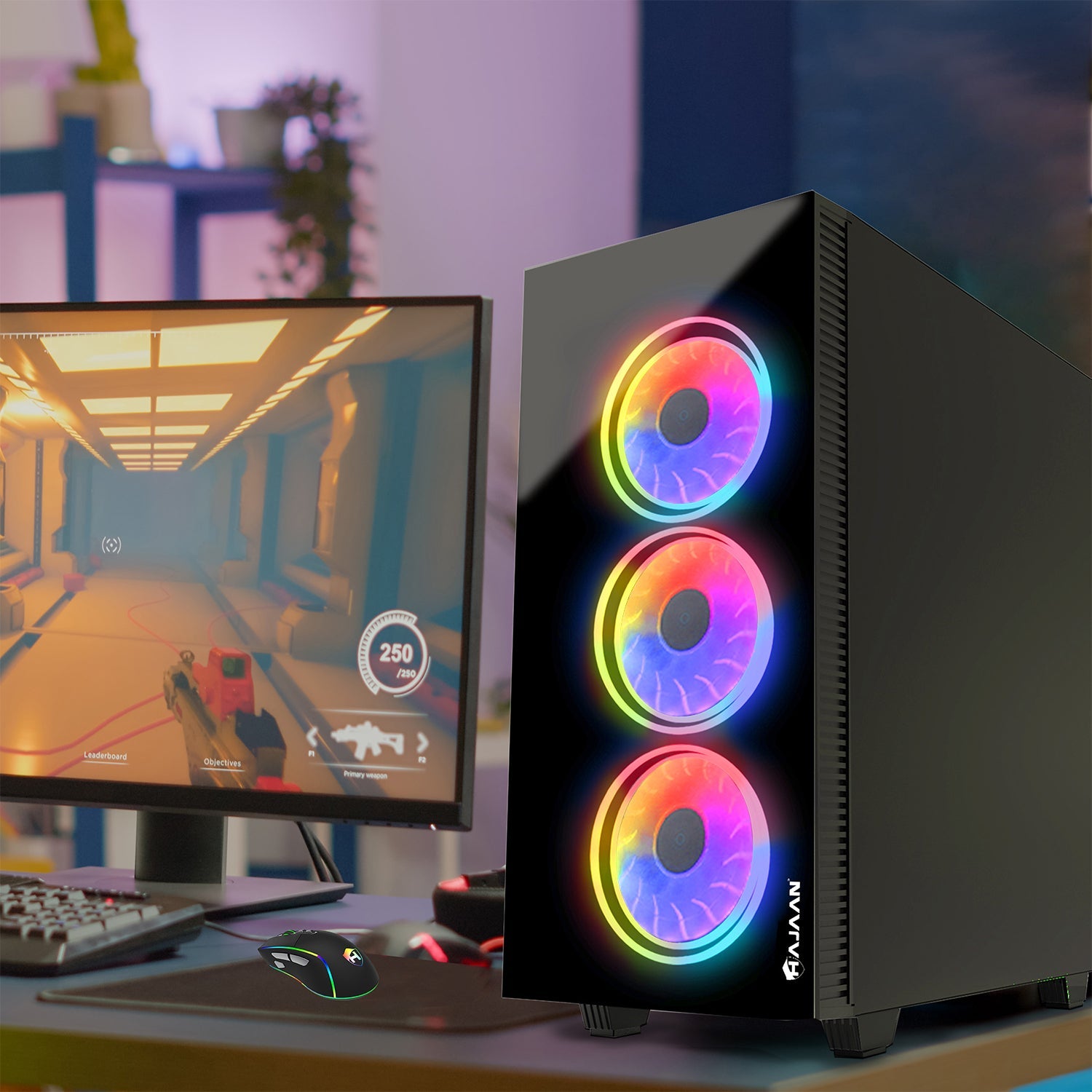 - RGB case lighting with various color effects and tempered glass side panel offers an attractive, futuristic look to your gaming setup.