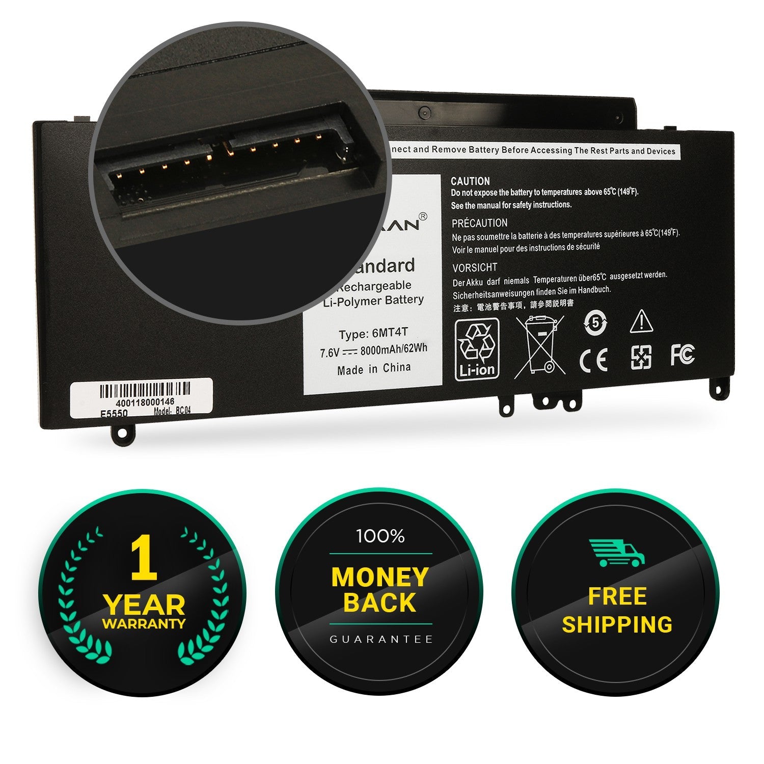HAJAAN New Dell Lattitude E5450 E5550 8V5GX R9XM9 WYJC2 1KY05 G5M10 – High Performance (Li-polymer, 7000mAh / 52Wh,4-Cells,7.4V) Laptop Battery, 1 Year Warranty