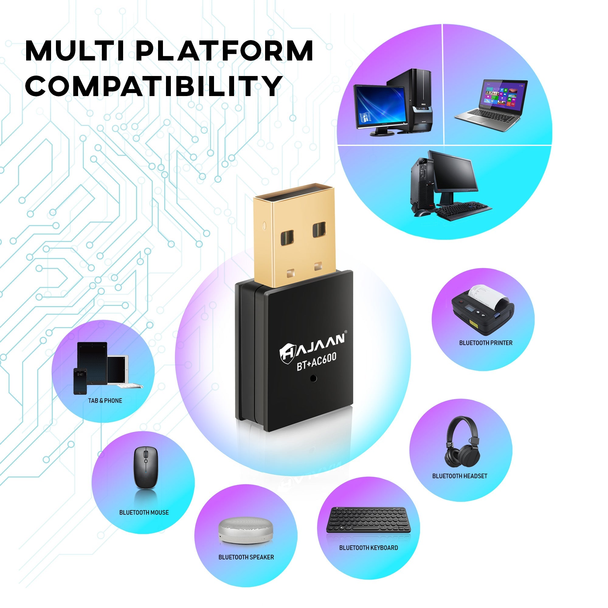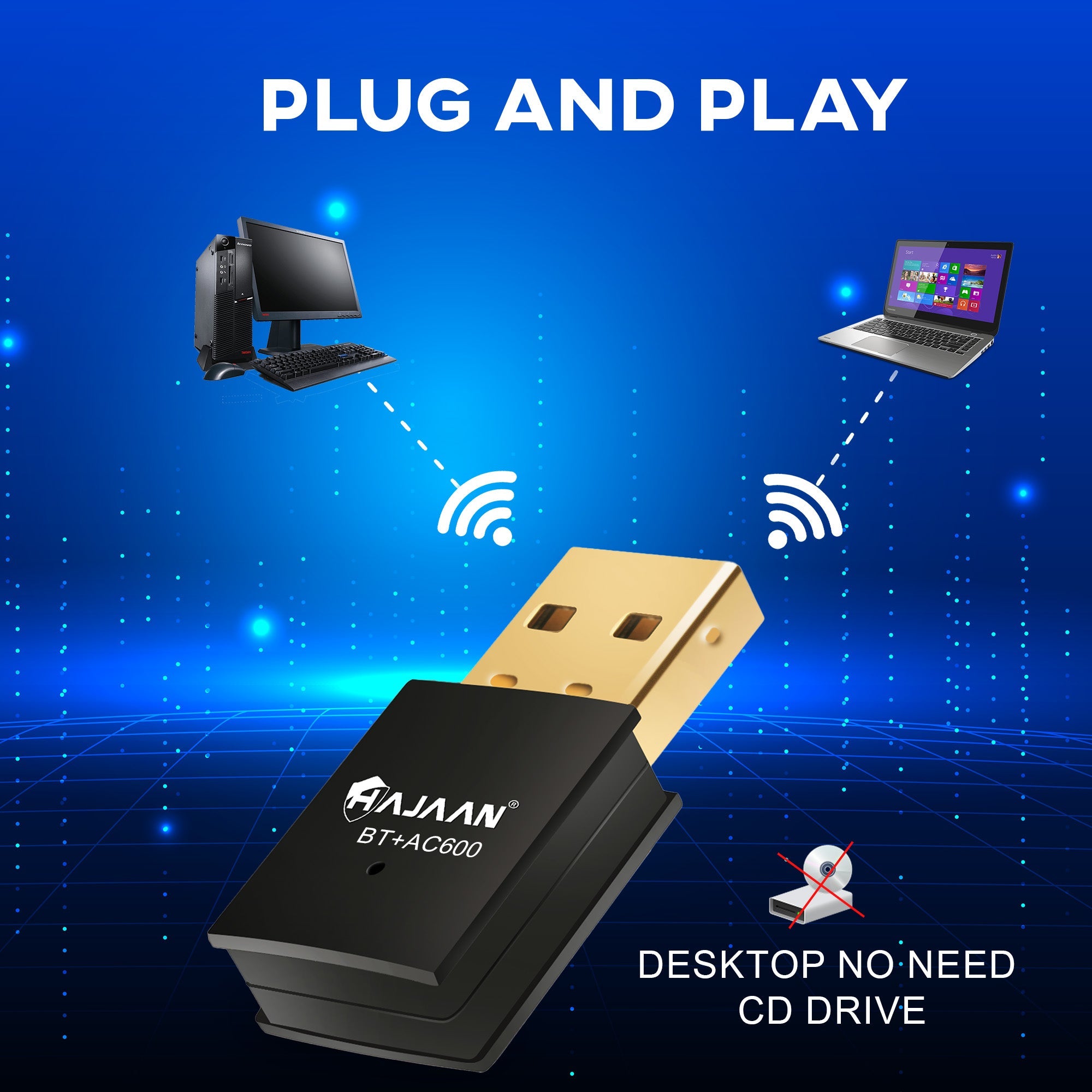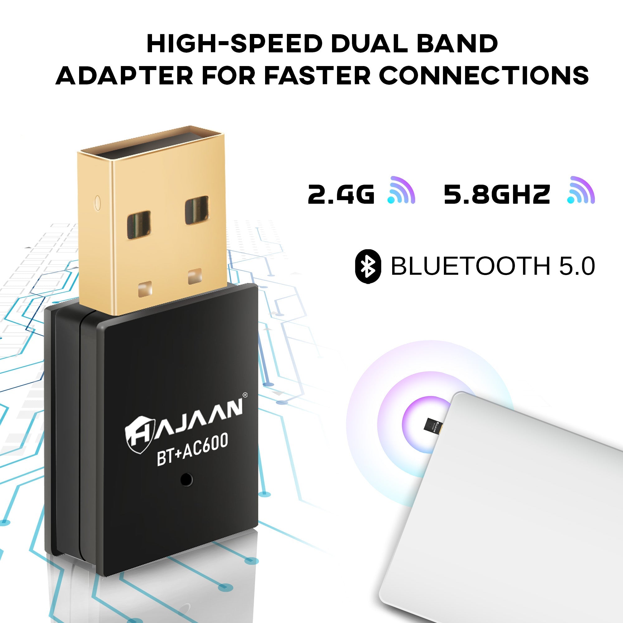 HAJAAN USB 2-in-1 WiFi and Bluetooth Adapter 600Mbps 2.4/5.8Ghz Dual Band Wireless Network Adapter for Desktop PC, Laptop, Bluetooth 5.0 Mini WiFi Dongle