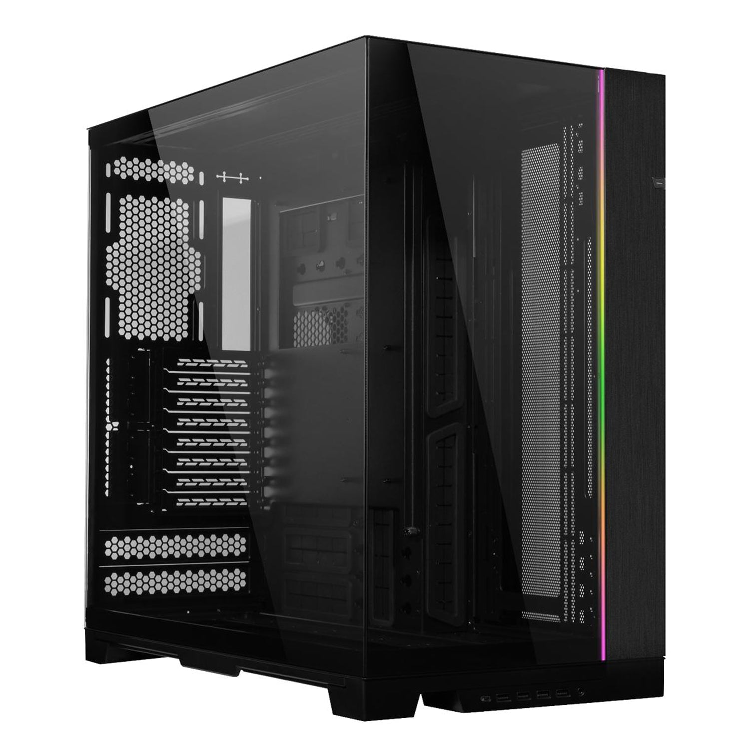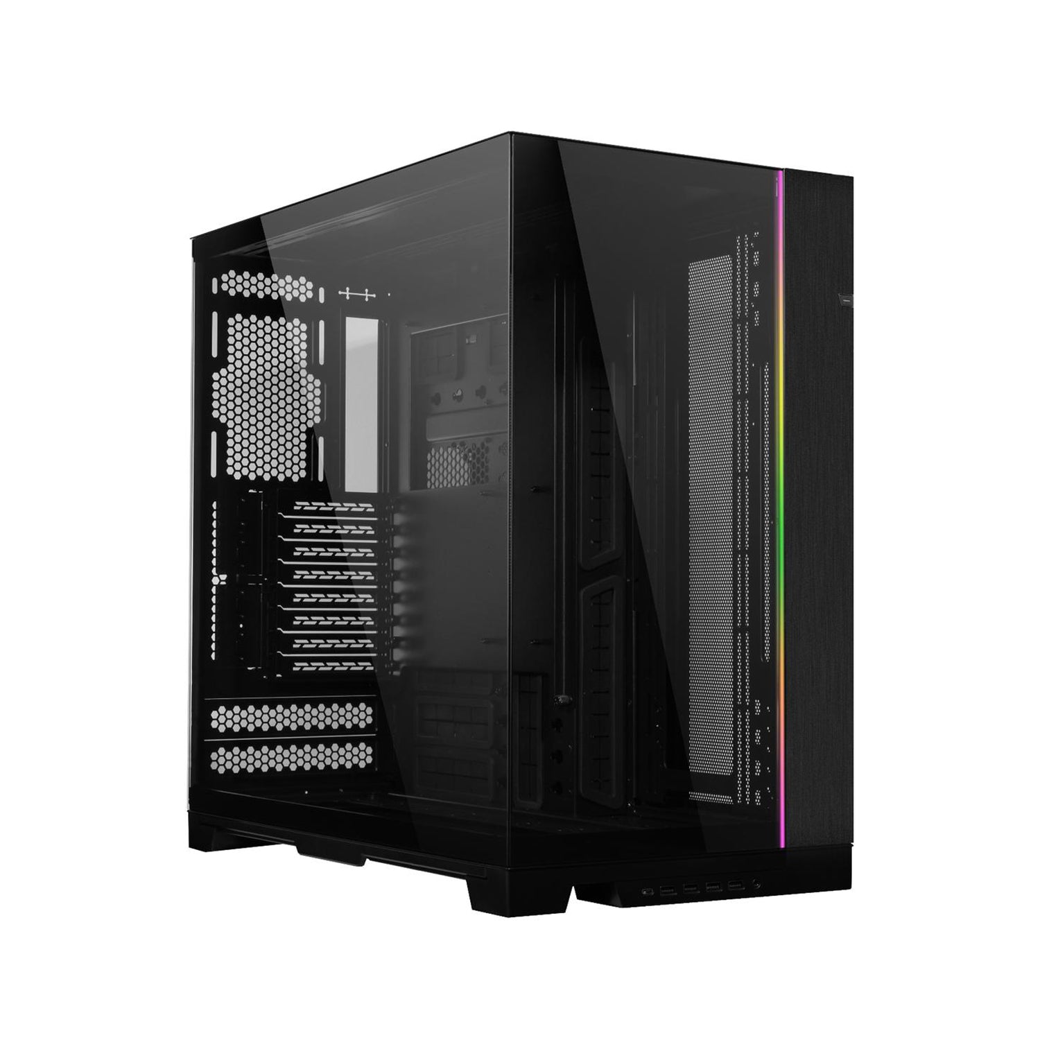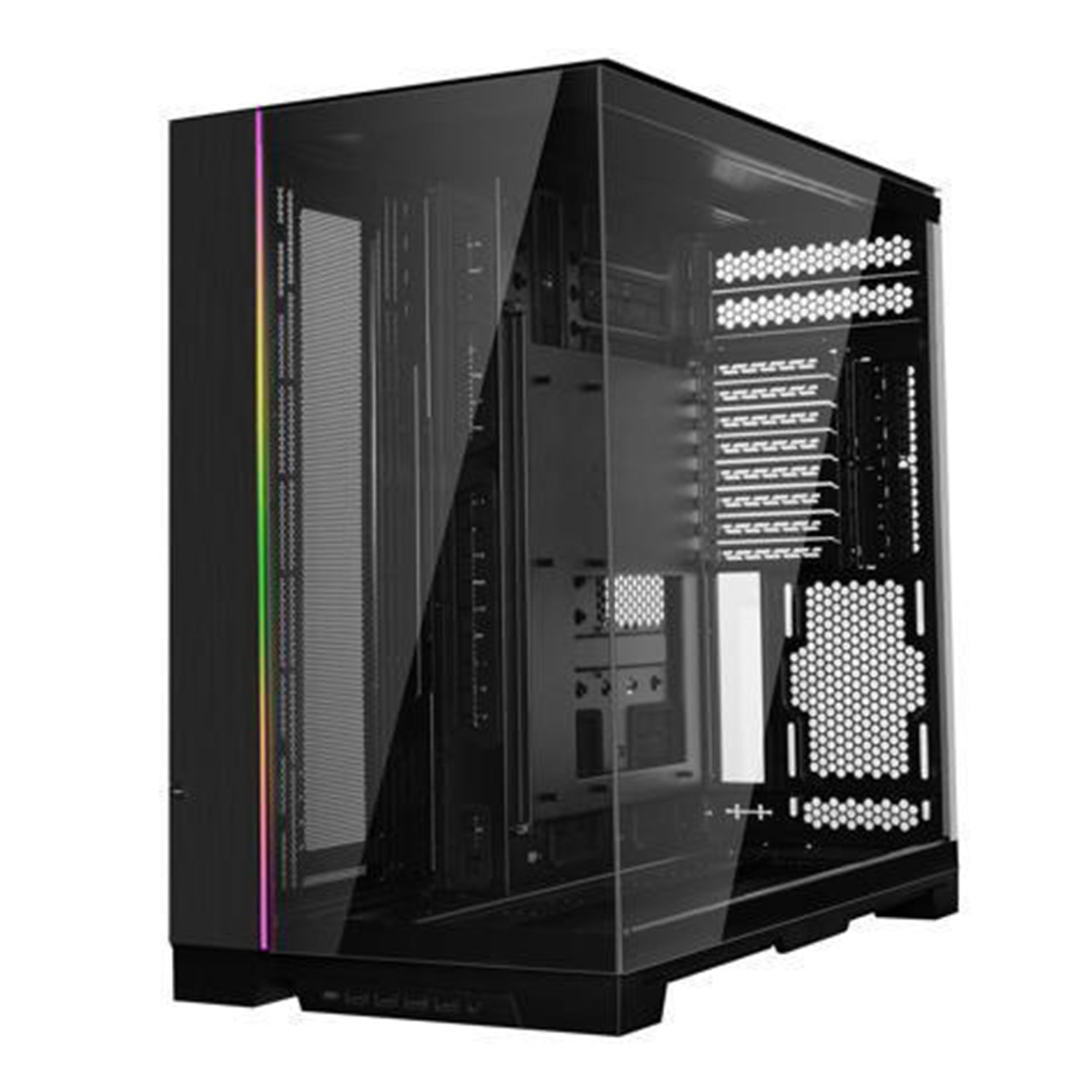 - Front and side tempered glass panels with a removable pillar for a seamless view of components and RGB lighting.