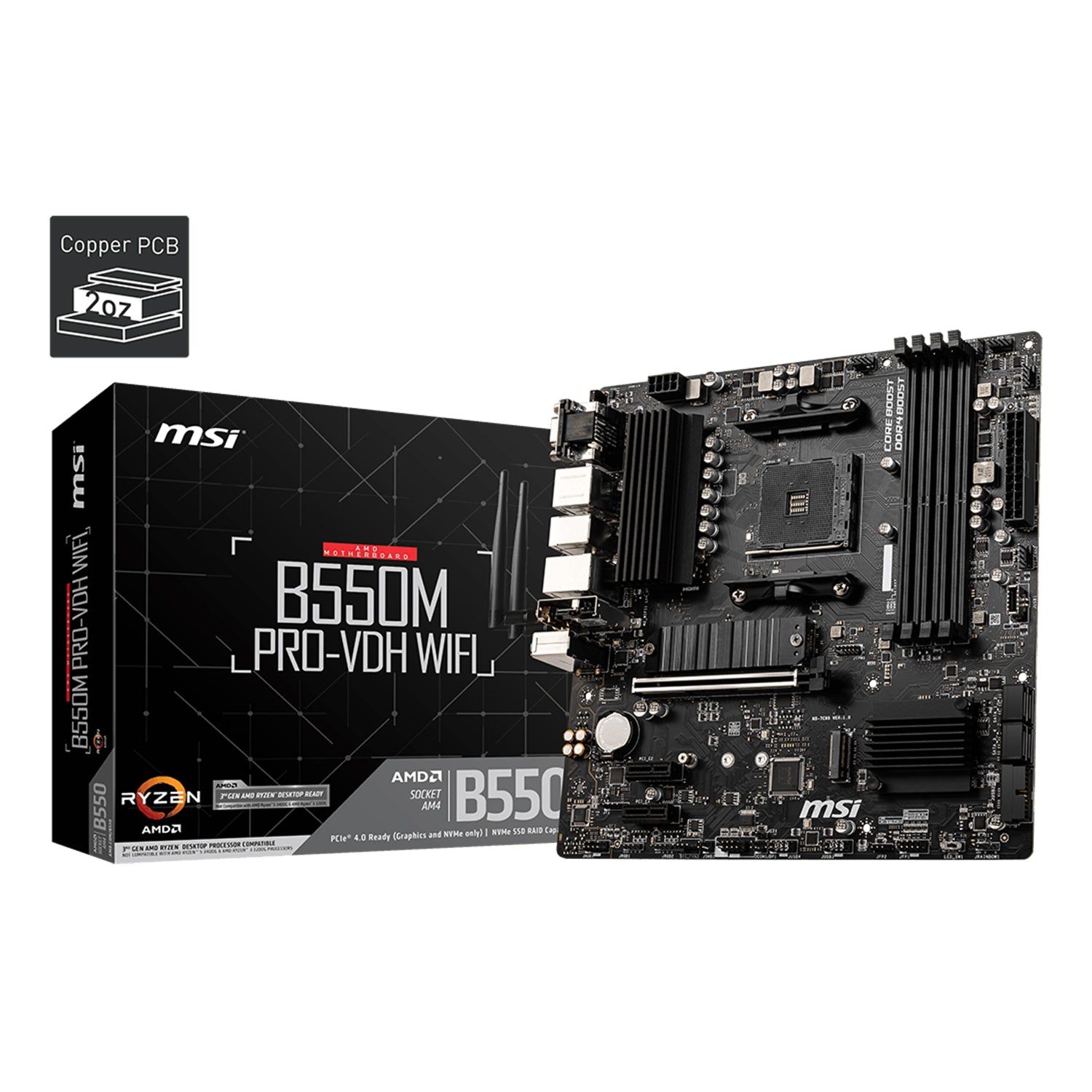 MSI B550M PRO-VDH WIFI ProSeries Motherboard – Support AMD Ryzen 5000/4000/3000 Series Desktop Processor, With DDR4 Up to 128GB Max Memory, Display Port / HDMI