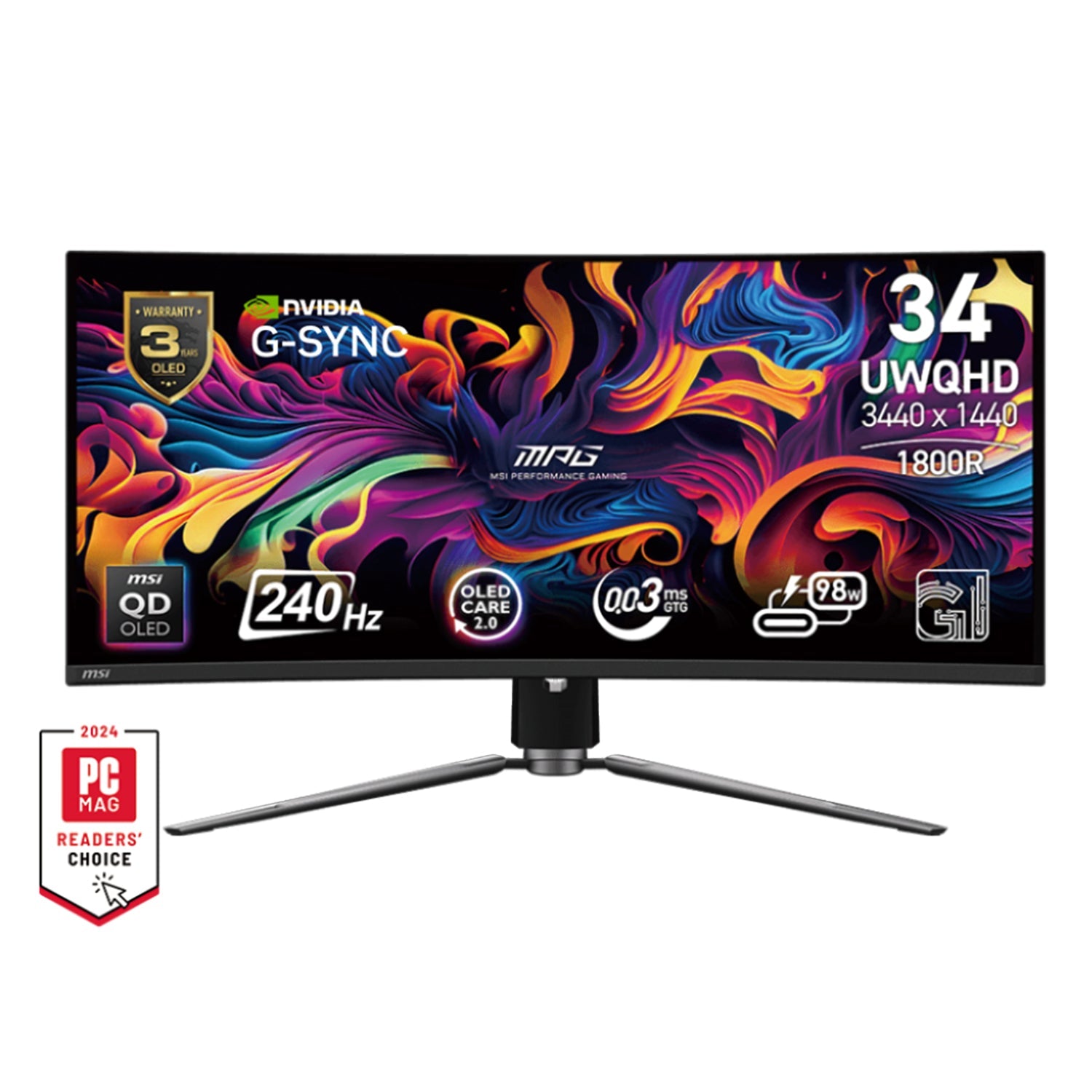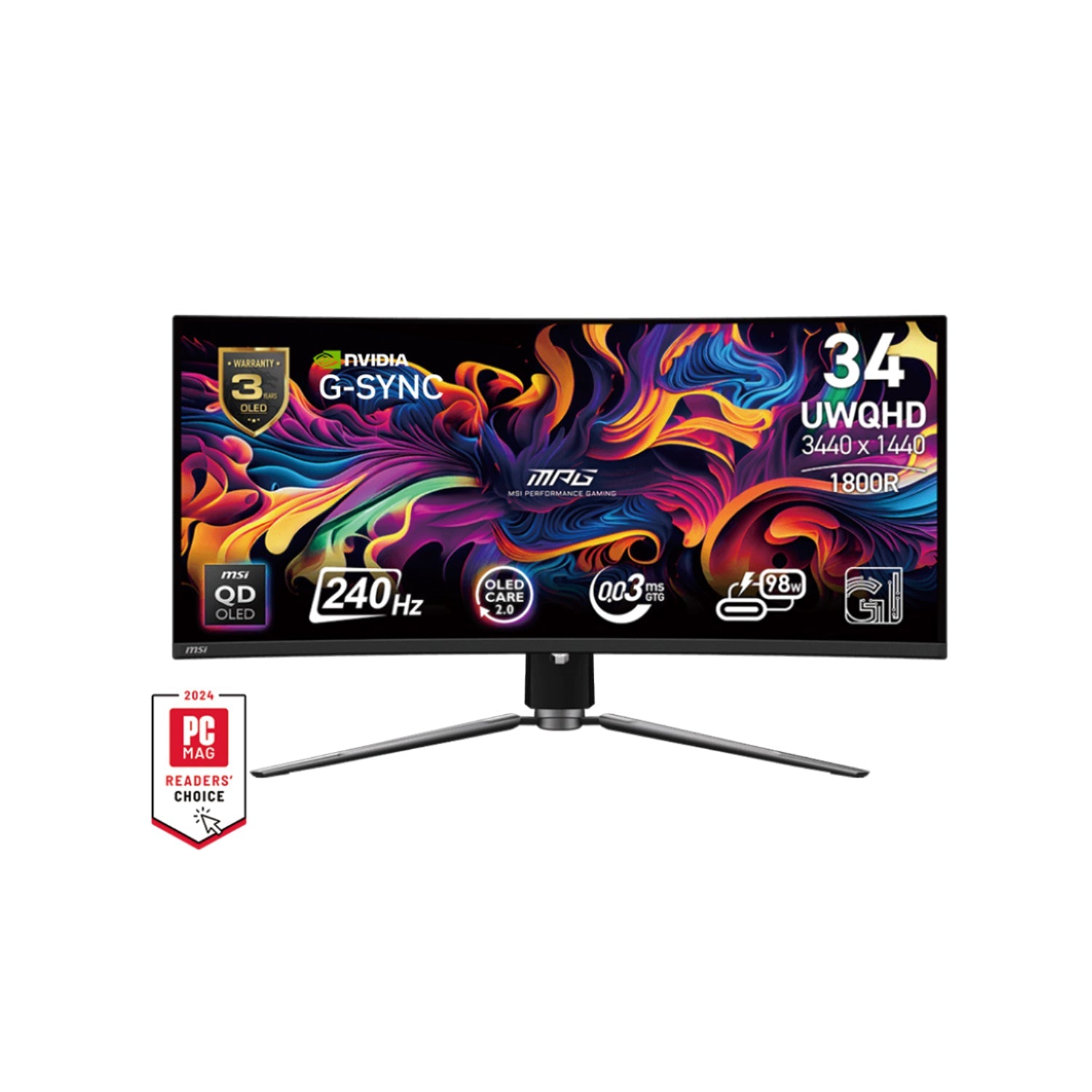 - MSI MPG 341CQPX QD-OLED 34-Inch Flat Curve monitor: with a 240Hz refresh rate designed for professional gamers and immersive gameplay.