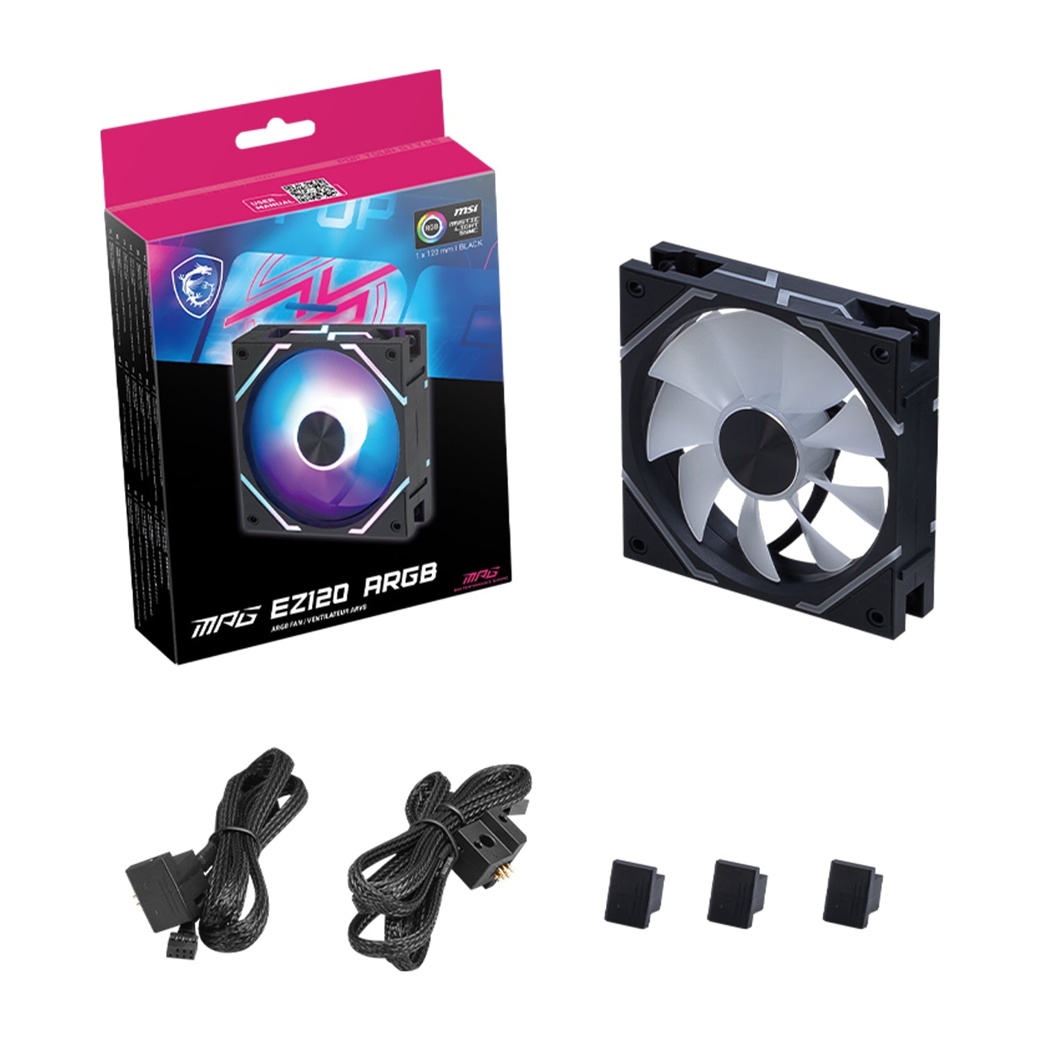 - MPG EZ120 ARGB-1B Fan / Black: The MPG EZ120 ARGB fan offers an easy assembly experience with magnetic block connections that simplify cable management. Sync RGB lighting with your motherboard or customize effects in MSI Center to showcase your style.
