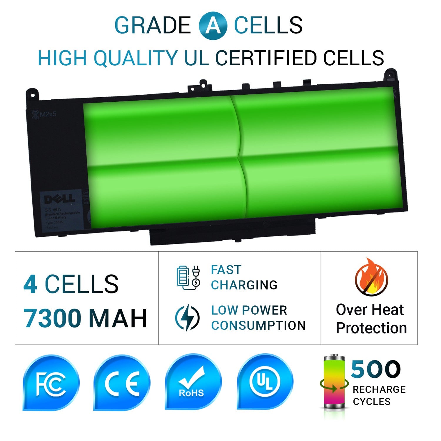 New Replacement Laptop battery for Dell Latitude E7470, E7270 Type J60J5 MC34Y (7300mAh/55Wh , 4- Cells, 7.6V), 1 Year Warranty