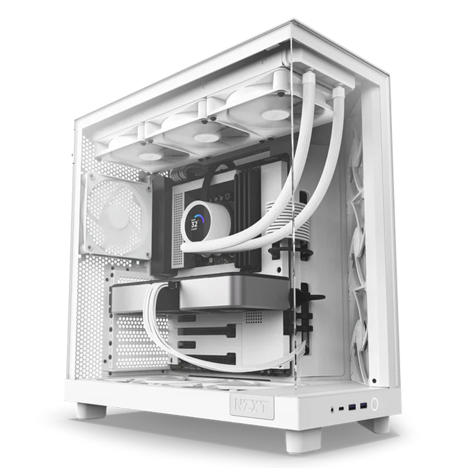 • Experience peak performance within an innovative compact dual-chamber. Prioritizing GPU cooling, the H6 Flow’s panoramic glass showcases the interior while freeing up space for improved airflow.